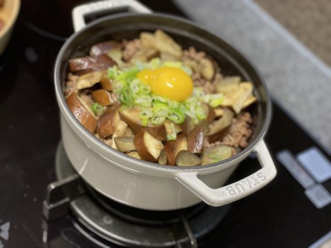 가지 소고기 솥밥.