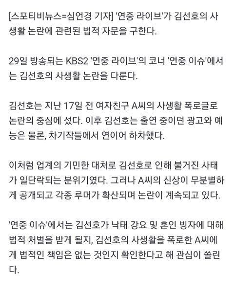 인터넷이고 방송이고 이렇게 떠들어대니 김선호가 더 못나오지, 해명이든 변명이든 하고 싶어도 지들맘대로 사생활 다 파헤치고 이진호는 여자측 과거 다 까발리고..