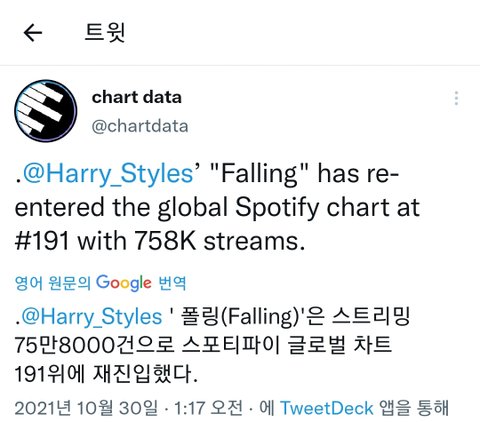 ㅇㄴ 해리팬인데 개쪽팔림 니네 말처럼 해리 인기 오지는거 맞고 Falling 인기 개많았던것도 맞는데 Falling 나온지 2년가까이 된노래임 다시 차트인 한건 정국 영향 맞지… 니네끼리 아무리 싸워봤자 해리랑 정국 둘다 탑가수라는 사실 안변함