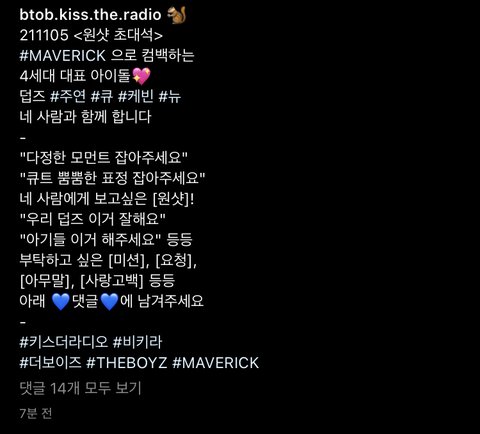 비키라(비투비 키스 더 라디오)에 더보이즈분들 나와요! 댓글에 더보이즈분들이 해주셨으면 하는거 요청하실 수 있어요! 11월5일 10시입니당
