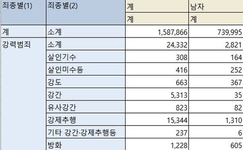 딱 봐도 성범죄 항목 숫자가 압도적이지 않아?