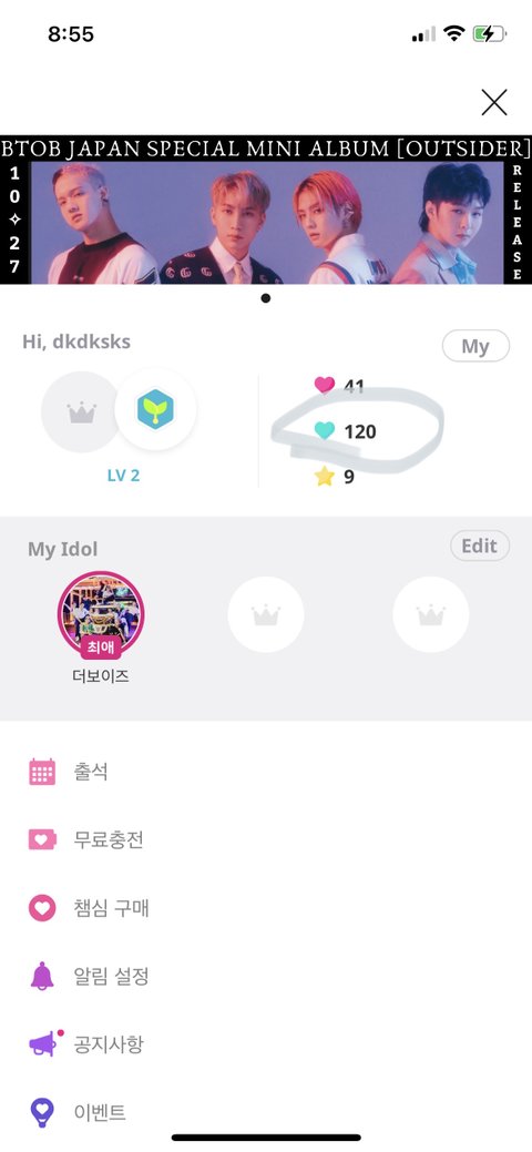 소멸되기전에 모아둔 타임챔심 다 털고오자! 프로필 들어가서 파란색 하트 개수 기억해놓고 그만큼 입력해서 쓰면 됩니당! 이거 쓰면 경험치 쌓이고 레벨업 하면서 하트챔심 적립되니까 소멸되기전에 꼭 사용해줘❤️