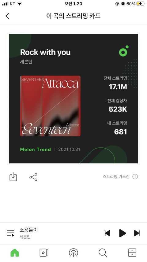 근데 가온 반영은 좀 어이없네 요즘 누가 다운받아서 듣냐구 다들 스밍권 끊어서 듣지ㅠ