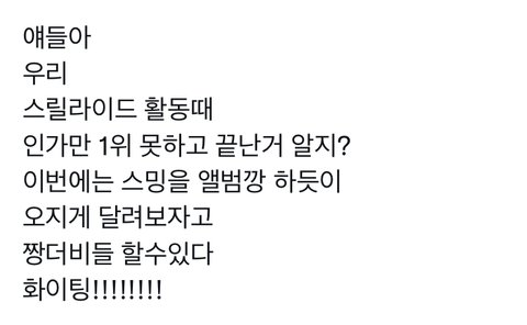울애들 초고속 컴백임에도 커하를 찍은 소감이 어떠냐는 질문에 대답할 수 있게 우리가 더 열심히 #가보자고