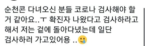 헐 순천콘 갔다온 사람 코로나 걸림.....