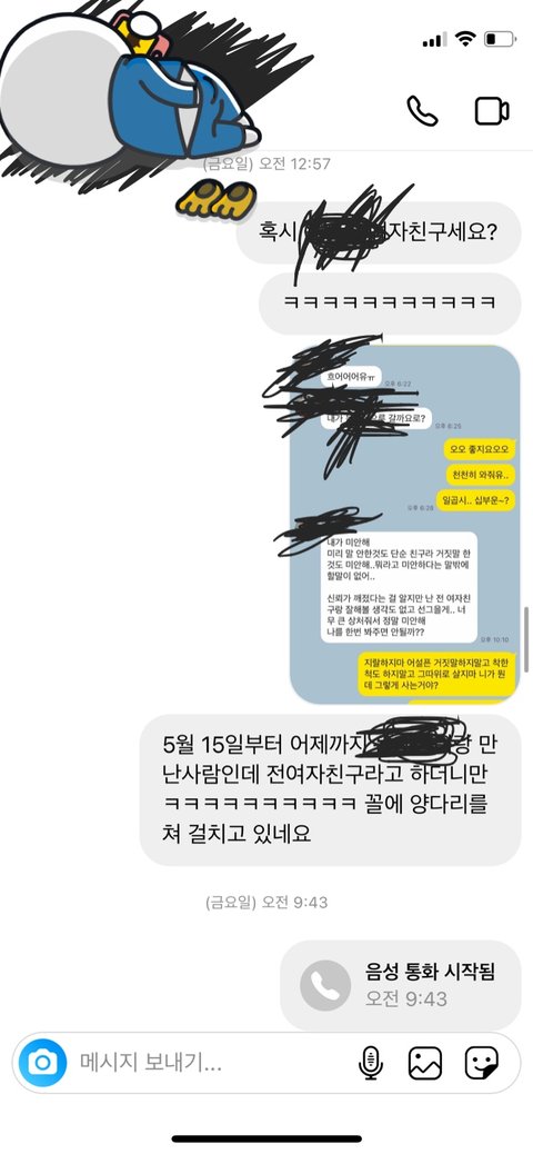 근데 오후 3시쯤? 여친한테 연락이오더라고요.