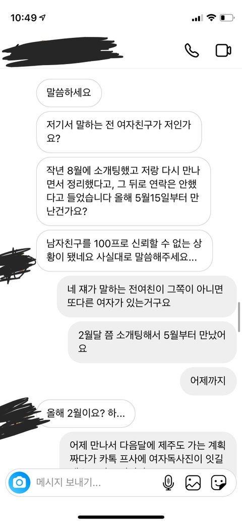 3. 전여친으로 추정되는 사람을 찾아서 연락하니 위 사람은 본인이 아니라고함. (작년 XX월 부터 2년 사겼다고함)