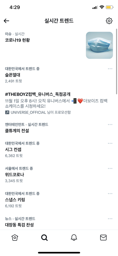트위터 지웠다 다시깔았는데 이렇게만 뜨고 실트순위가 사라짐 ㅠㅠ