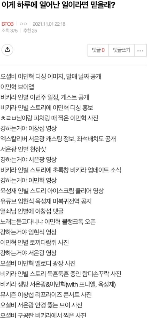 아직 나름 군백기인데도 어제 하루만에 이만큼의 떡밥이 쏟아졌는데 완전체되면 비투비랑 멜로디랑 다들 얼마나 더 바빠질까ㅋㅋㅋㅋ