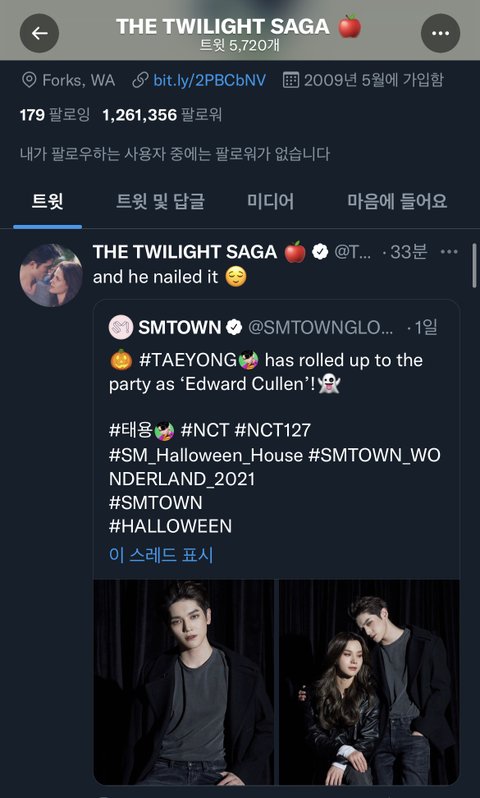 미쳤어 트와일라잇 공계에서 태용이 언급했음...