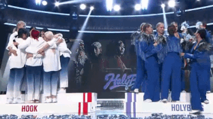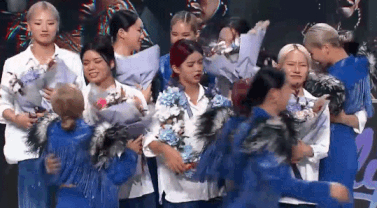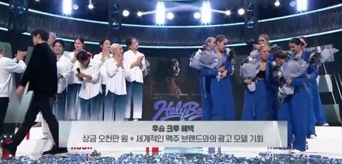 홀리뱅 크루들이 훅 크루들에게 꽃다발 줌
