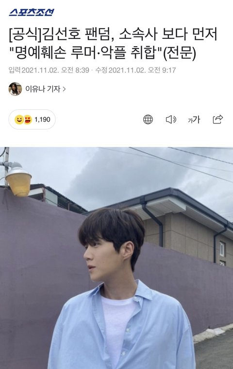 일을 이런식으로 하는지 모르겠지만 보도대로 계약관계가 맞다면 아티스트 케어 제대로 했으면 좋겠고, 만약에 의혹들이 맞고 소속사의 구린 장난질들이 있었다면 이 기회에 다 까발려지고, 배우도 아티스트를 인격체로 대우하고 존중하는, 리스크 관리와 케어 모두 할 줄 아는 회사로 갔으면 좋겠음. 결국 팬들이 오래 보기 원하는 건 연기할 때 행복한 '배우 김선호'니까. 이 모든 의혹들이 뇌피셜이고 소속사가 머리를 치밀하게 잘 쓴거였거나 아님 그저 일 머리없고 능력 부족인거면 좋겠지만.. 그것 또한 심각한 문제라는 걸 제발 좀 인지하고 전반적으로 재정비 하길. 이미 늦었지만 더 늦기전에