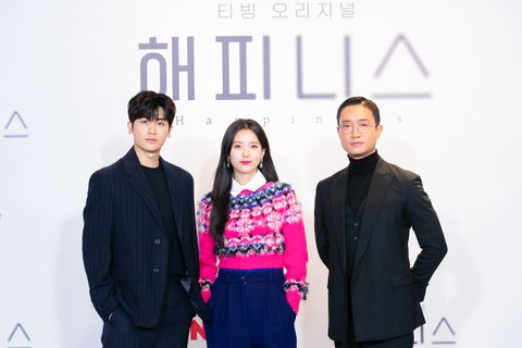 티빙 오리지널 드라마 ‘해피니스(Happiness)’의 제작발표회가 1일 온라인으로 진행됐다. 이 날 자리에는 안길호 감독과 배우 한효주, 박형식, 조우진이 참석했다.