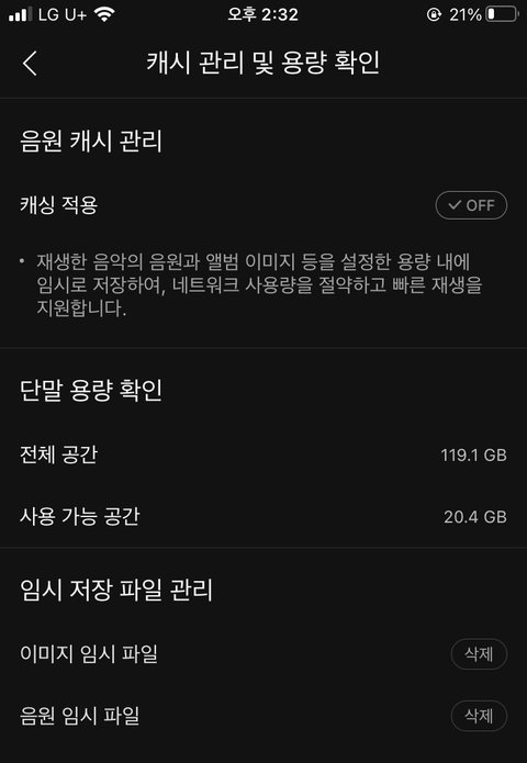 멜론 캐시 저장 끄는 법
