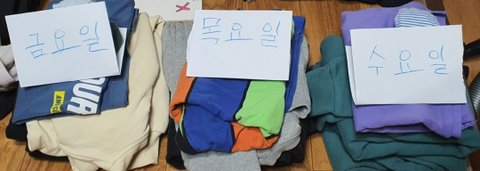 아들은 착실하게 수,목 잘 챙겨입고 학교갔고요ㅋㅋ