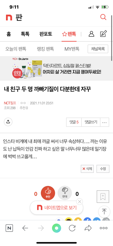 친구가 이젠 하다하다 못해 내 앞에서도 최애를 까길래 한 소리 했어 넌 일부러 나 꼴 받는거 보고싶어서 그런 말 하는거냐고 니 최애만 소중한 줄 아냐고 말해버림 지금 생각해보니까 아까 너무 급발진 한 거 같기도 하고.. 아 짜증나서 걍 연락 안할려고