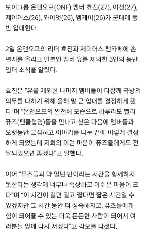 멤버 다섯명 동반입대