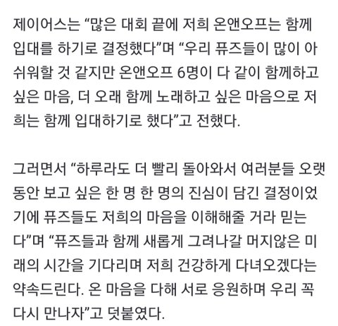 온앤오프가 퓨즈 생각해서 큰 결심 해준 만큼 평퓨할게!!