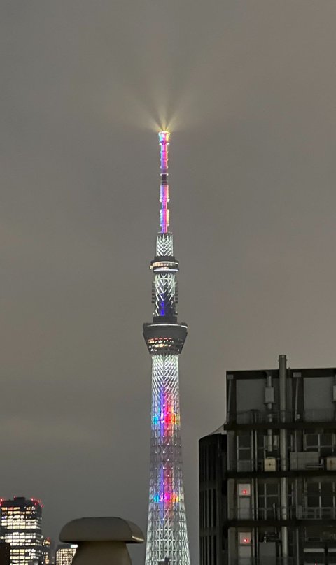 V6 멤버 색으로 점등된 스카이트리