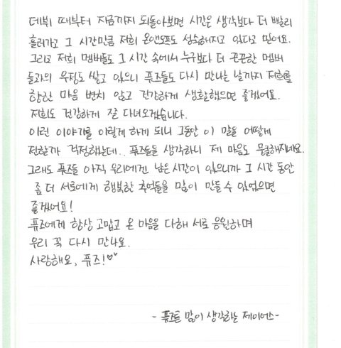 멤버 손편지 올라옴