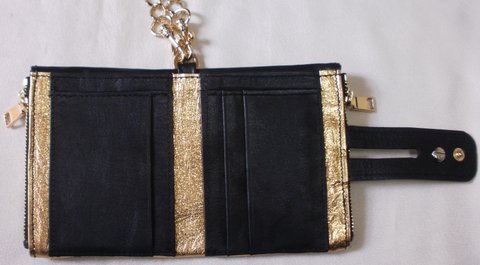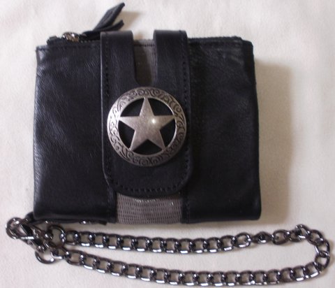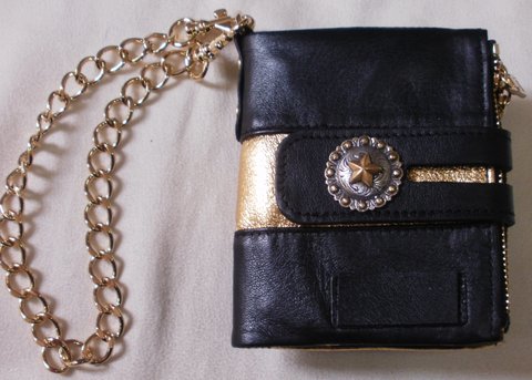 부드러운 소가죽과 골드,그레이 컬러 양가죽을 콜라보하여 별 디자인 콘초와 체인,지퍼 등으로 장식하여 제작한 다용도 천연가죽 지갑입니다.(마디샤)