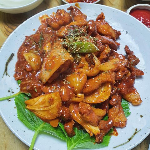 칠리와 땅콩소스에 찍어먹으면 꿀맛이긴 했습니다.