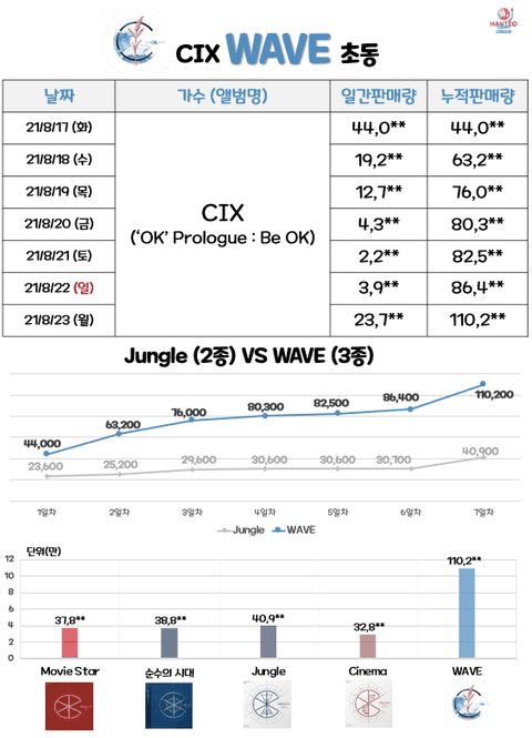 와 씨아엑 앨범 잘 팔리네 시네마랑 웨이브 노래 진짜 좋던데