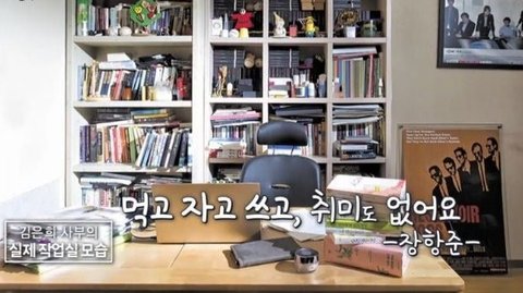 먹고 자고 쓰고, 취미도 없다고 말한 적이 있는데