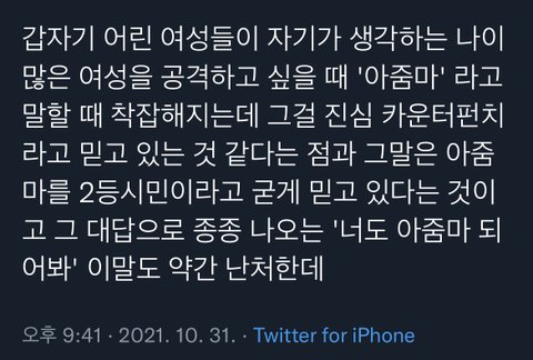 진짜 아줌마를 욕으로 쓰는거 개별로임