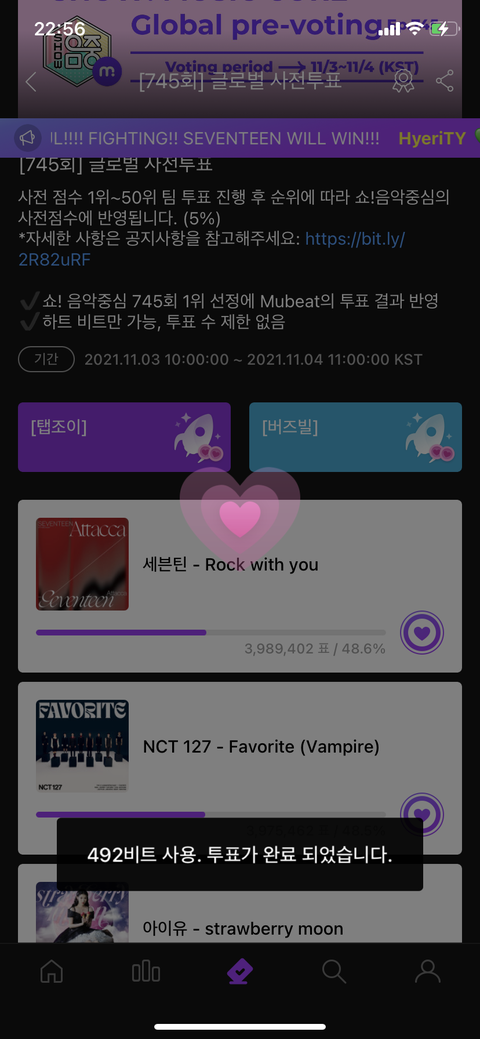 뮤빗 퀴즈 하니까 ㄹㅇ잘 모이네
