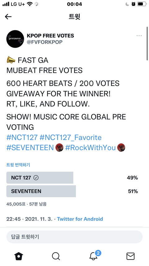 ❗️2퍼차이로 아깝게 지고싶지않으면 투표부탁행