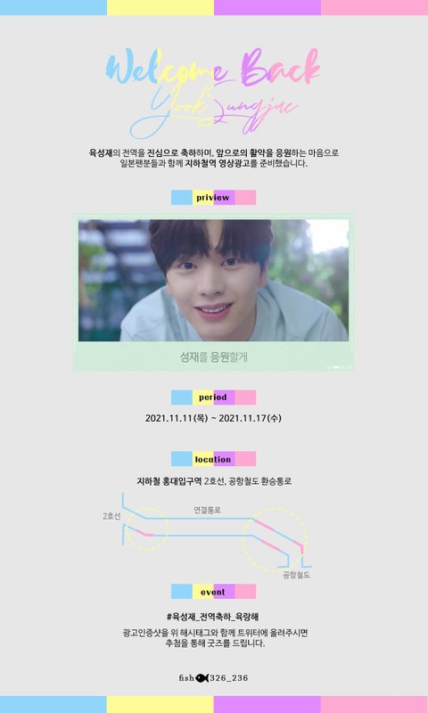https://twitter.com/326_236/status/1455837279600087045?s=21 성재 전역 지하철광고