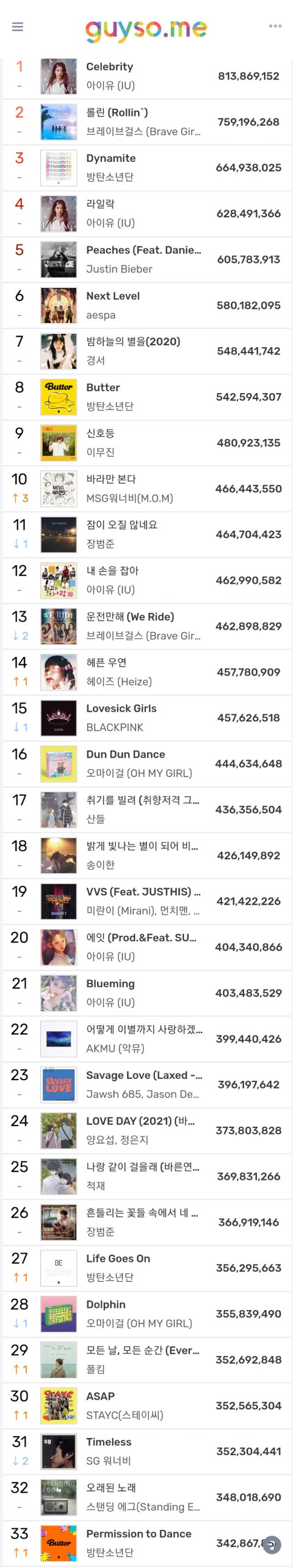 2021 연간차트 거의 나옴