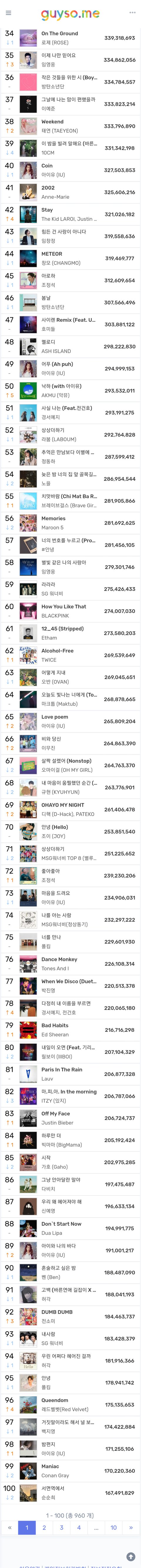 지금까지 가온 누적 스밍인데