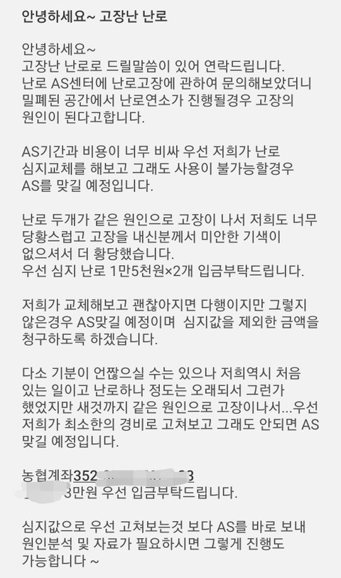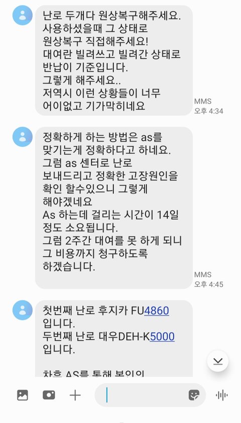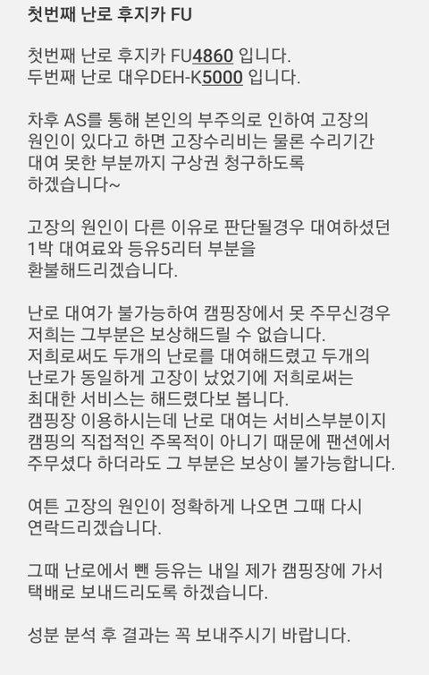 "그럼 제가 as를 보내면 될까요?" 그러시면서 "그러면 2주 난로 대여못한 난로 대여비 저 주실거죠?"이럽니다.