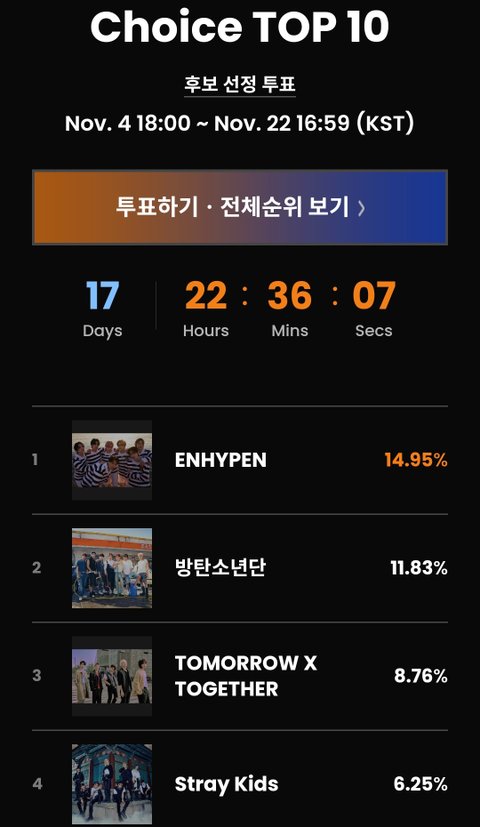 방탄 마마 투표 2위임 ㅋㅋㄱ