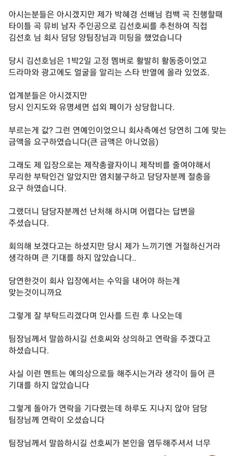 응 맞아 또 김선호 미담이야 [친분없는 가수 박혜경 제작자]