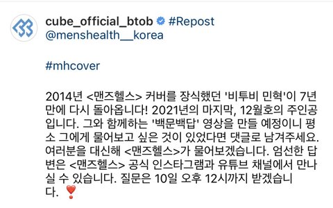 우리 민혁이 맨즈헬스 드디어!!!! 오셜비 알람 뜬 거 보고 소리 지름ㅠㅠㅠㅠ