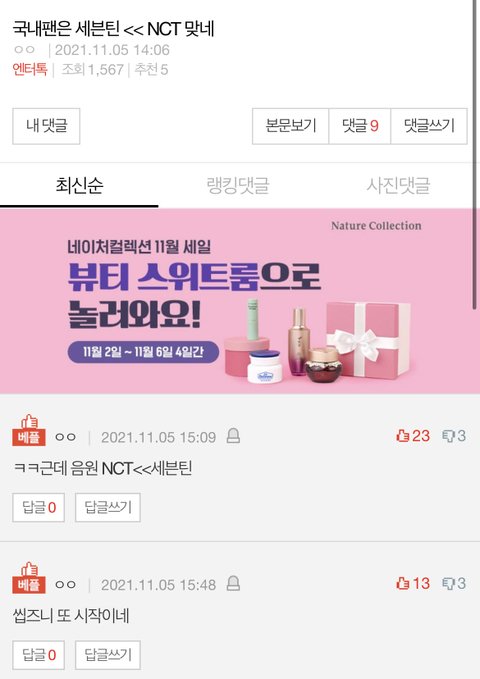 세븐틴으로 엔시티 까는글엔 저거 캐럿 아닌거 알지? 하던 분들 어디감? 선택적 먹금???