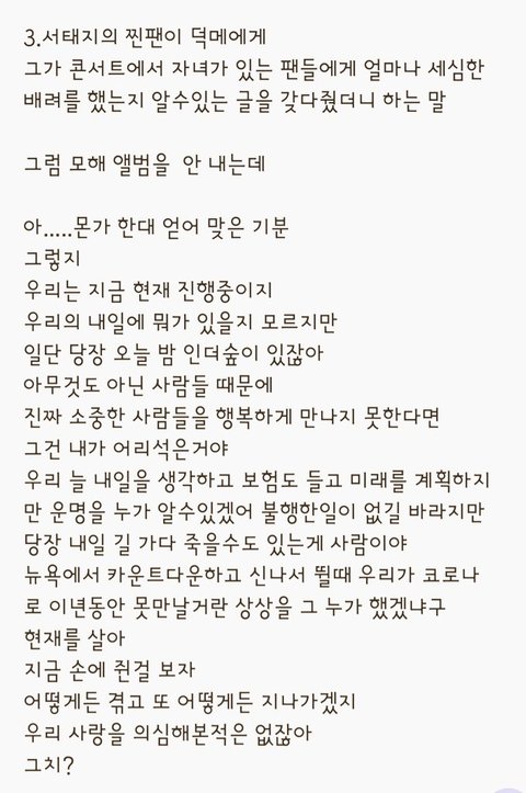 팬들 사랑도 난 변함없다고 생각해