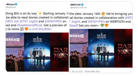 내년 1월 방탄소년단의 세븐페이트 착호를 바탕으로 아티스트 세계관 판타지 웹툰이 네이버웹툰과 네이버왓패드로 같이 공개될듯
