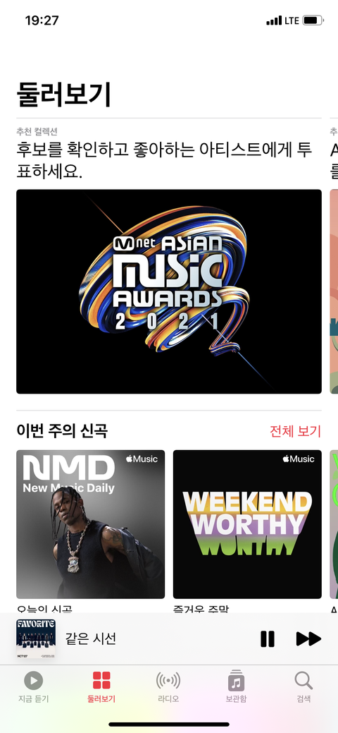 애플뮤직에 메인에 이거 걸린거 처음봄
