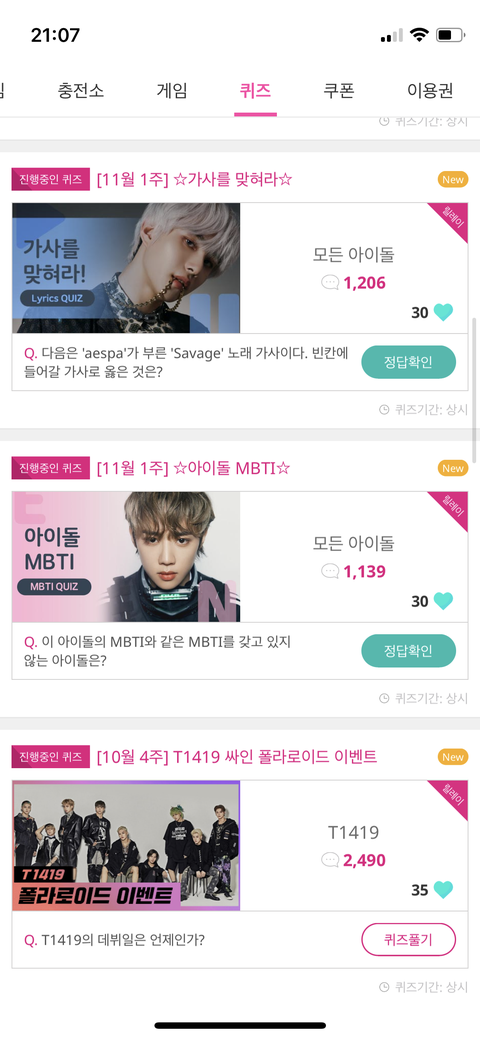 https://twitter.com/onlyquizanswers/status/1456572185351491589?s=21 여기 답올려주는 계정인데 금방모아짐