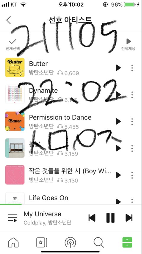 사과뮤직에서 버터 30초이상 듣기