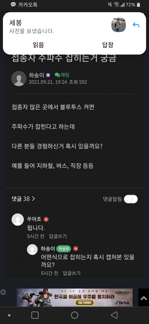 백신 접종자들이 블루투스가 뜨는 현상도