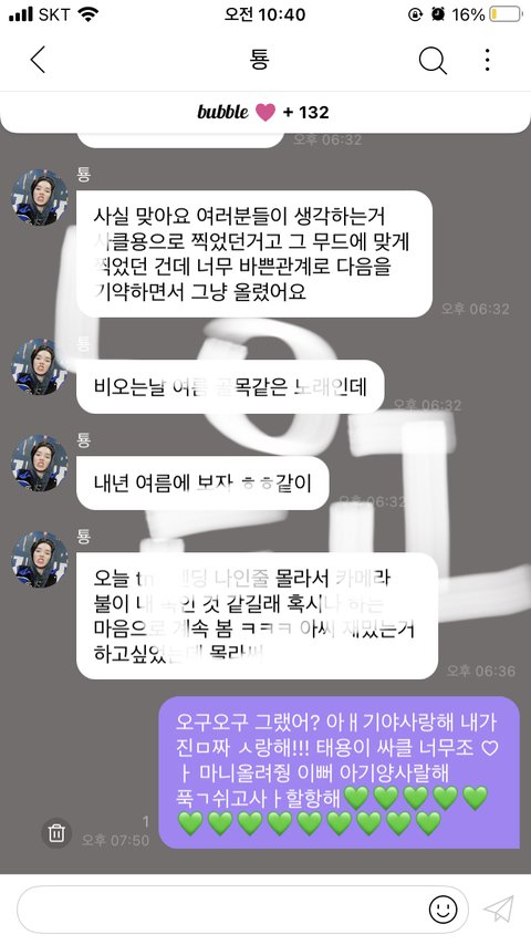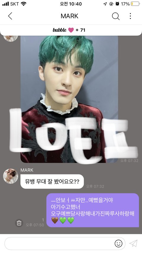 어제 좀 알딸딸한 상태에서 버블 답장 보냈는데 ㅋㅋㅋㅋㅋ