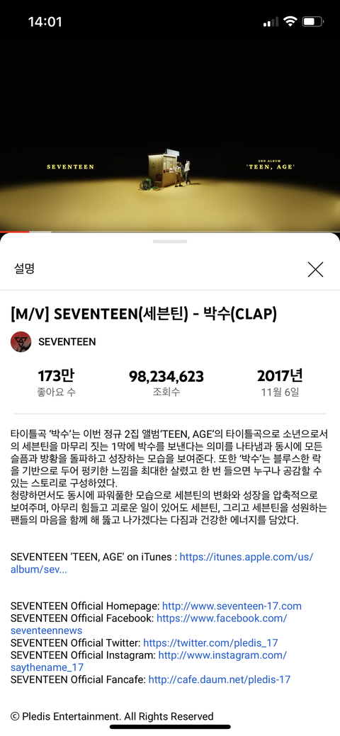 얘들아 박수 뮤비 1억뷰까지 180만도 안 남음