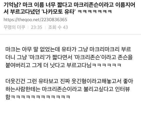 마크유타 귀여워죽겠다면