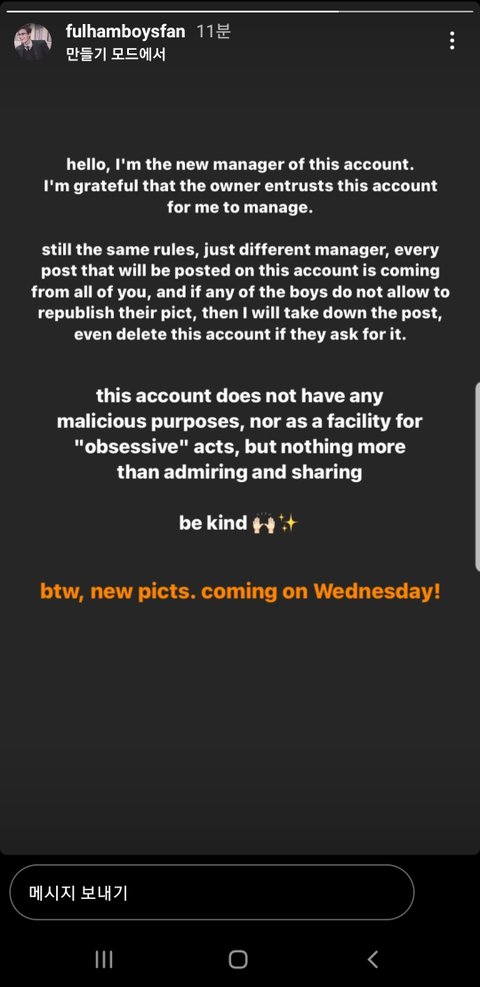 팬계정에 새글이 올라왔는데 해석좀 부탁해도 될까
