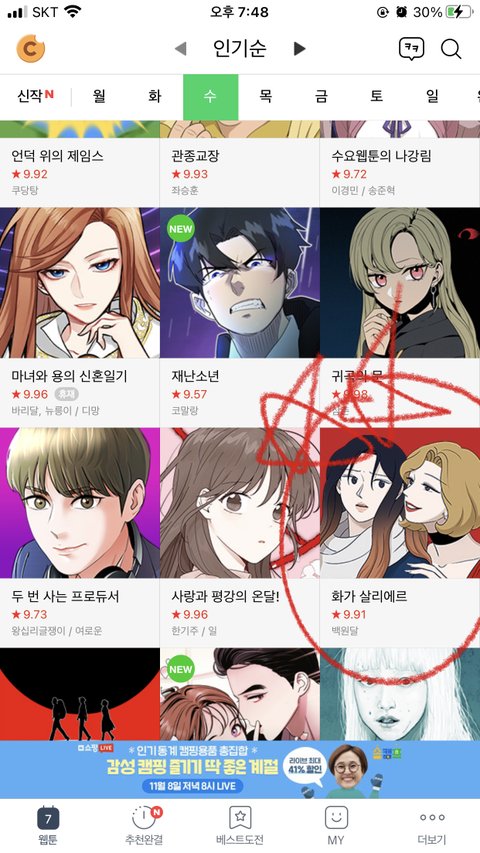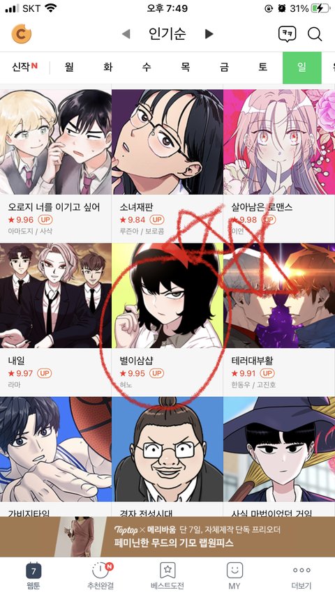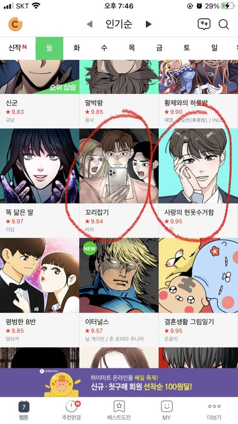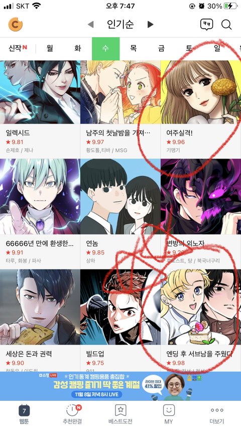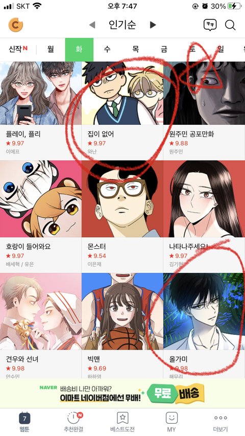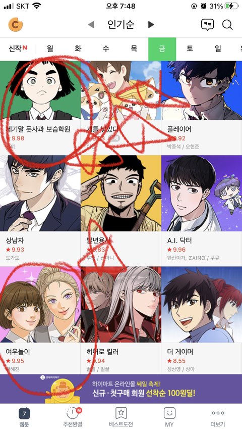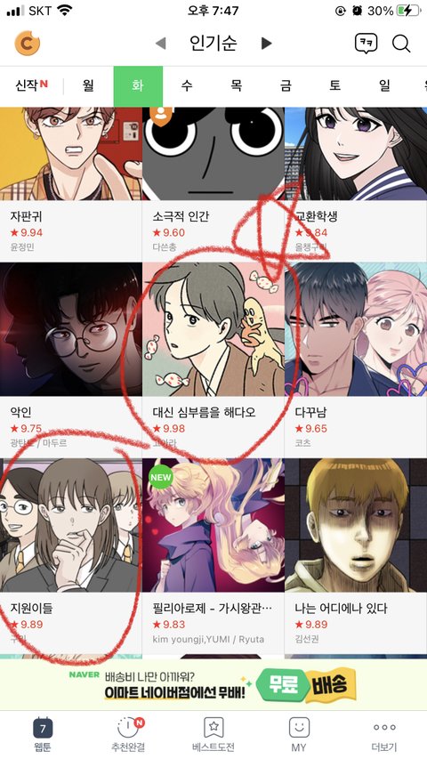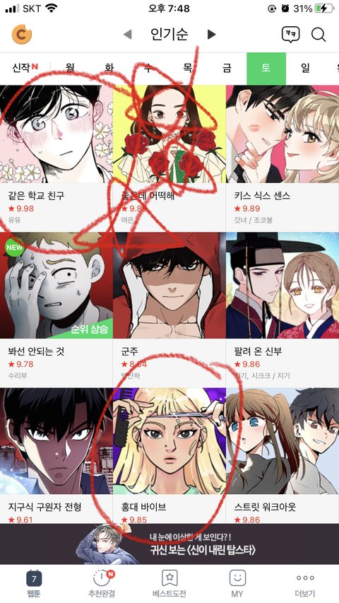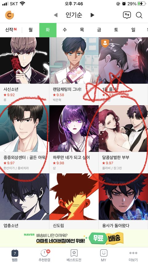 웹툰 하루평균 6개이상보는 사람의 추천작...